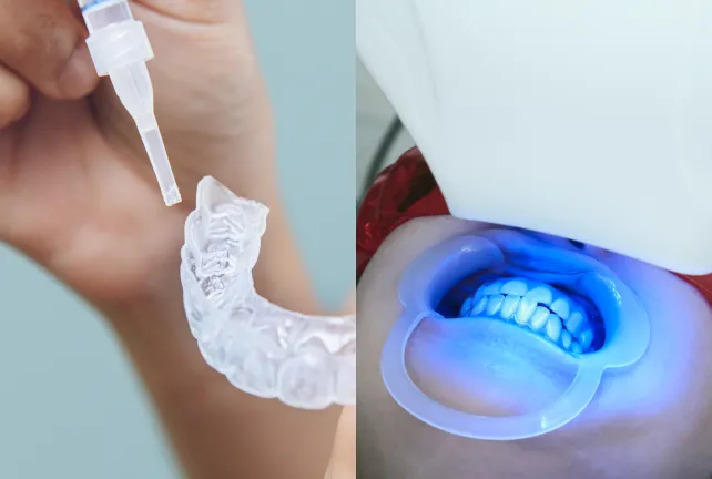 オフィスホワイトニングでは、当院で専門的な薬剤と機器を使って短時間で歯を白くします。ホームホワイトニングでは、ご自宅でマウスピースと専用ジェルを使って、ご自身のペースで理想の白さに近づけます。